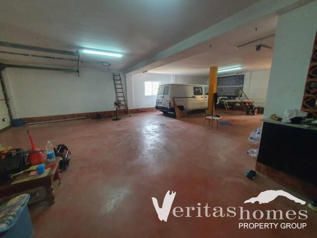 La planta baja consta de un garaje y taller muy amplio que mide 193m2 de superficie construida. Hay ventanas a la parte trasera de la casa y hay una chimenea aquí abajo también, además hay un baño.