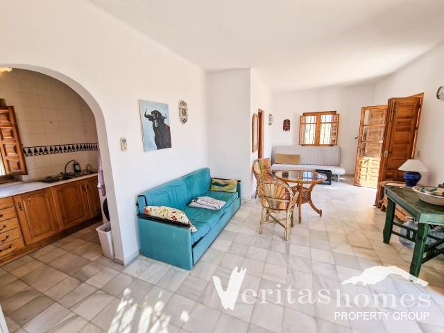 En el exterior, la propiedad tiene una amplia terraza con un sencillo muro y barandillas, ideal para comer al aire libre mientras se contempla el paisaje. Una sección cubierta de caña de bambú proporciona sombra, y existe la posibilidad de mejorar el espacio exterior con zonas de sombra o asientos adicionales. La casa dispone de electricidad, pero no de agua corriente, que puede suministrarse en camión, algo bastante habitual en esta zona. Los pueblos costeros de Mojácar, Garrucha y Vera Playa están a sólo 20 km de distancia, por lo que esta es una gran opción para alguien que busca un refugio tranquilo con la posibilidad de añadir sus propios toques personales.