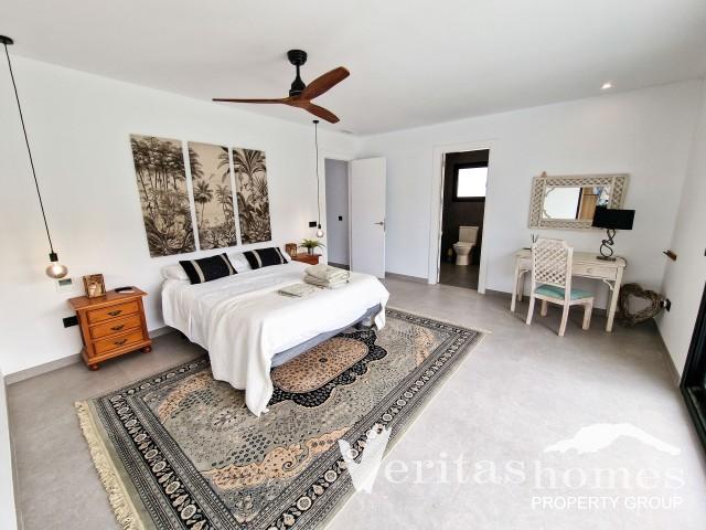 Esta impresionante villa contemporánea, terminada en 2021, se encuentra en la codiciada zona de Vista de los Ángeles de Mojácar, a solo 600 metros de la playa. Diseñada para la vida moderna, la propiedad cuenta con un estilo arquitectónico elegante, acabados de alta gama e interiores espaciosos. Los amplios ventanales del suelo al techo inundan las zonas de estar con luz natural, ofreciendo impresionantes vistas de las montañas y el Mediterráneo.