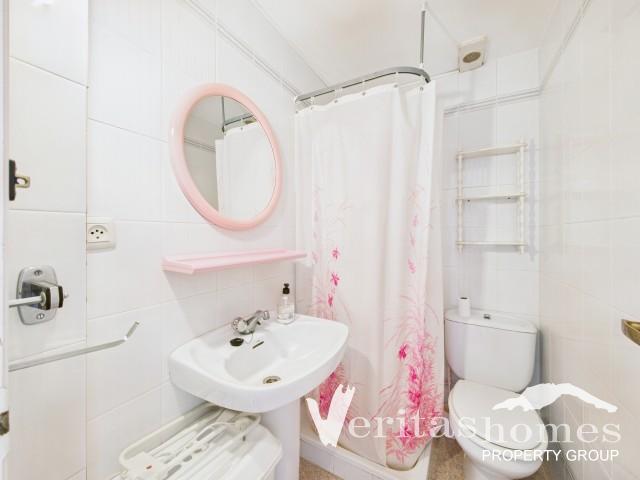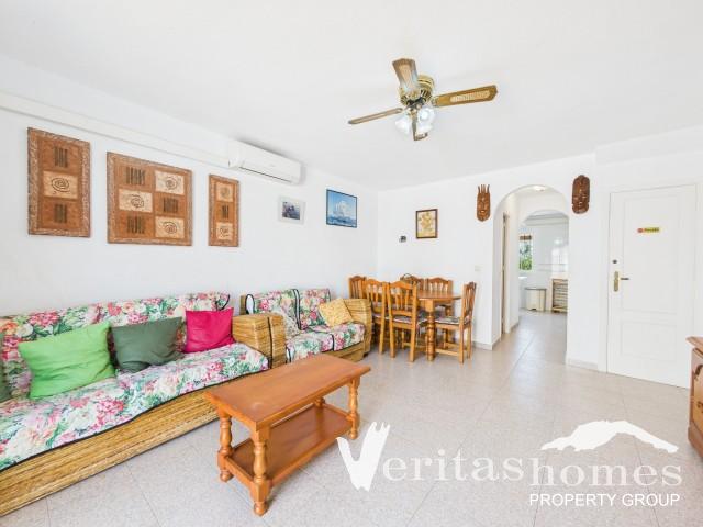 Esta casa adosada, en buen estado, está situada en la popular urbanización Girasoles, en el extremo de Río Abajo de Mojácar Playa, a poca distancia a pie de la playa de Rumina, junto a la laguna de Río Abajo, y a poca distancia en coche de Garrucha, con sus tiendas, restaurantes y puerto deportivo.