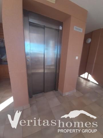 La propiedad tiene una superficie construida de 73,28 m2, excluyendo la enorme terraza privada y el aparcamiento cubierto. Internamente, la propiedad se distribuye entre comedor, sala de estar con aire acondicionado, estufa de pellet y acceso directo a la enorme terraza, cocina totalmente amueblada y equipada, pasillo, dormitorio principal con baño en suite, dormitorio doble y segundo baño con ducha. El aparcamiento cubierto se encuentra a nivel del suelo en el mismo bloque donde se ubica el apartamento. Ambos dormitorios tienen armarios empotrados y ventiladores de techo. El bloque cuenta con un ascensor desde la planta primera.