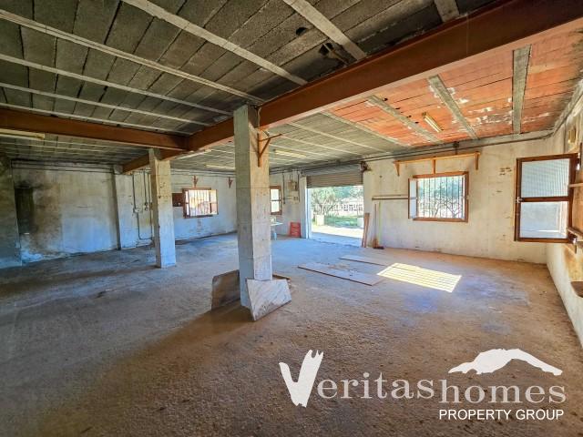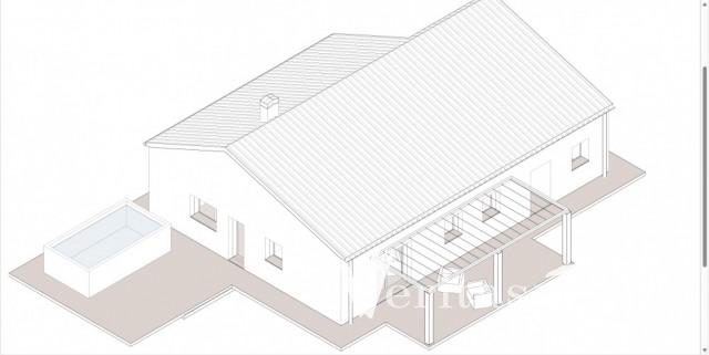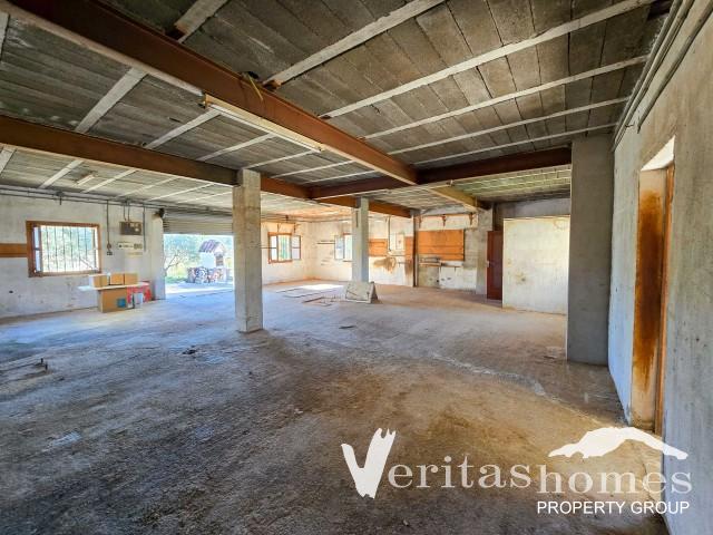 Situada en más de 10 000 m² de terreno rústico, la propiedad incluye una parcela urbana definida de 653 m², en la que se encuentra el edificio existente de una sola planta de aproximadamente 144 m². La estructura, anteriormente utilizada como taller de carpintería, es una construcción sólida con electricidad y agua ya conectadas, lo que proporciona un punto de partida práctico para su remodelación.